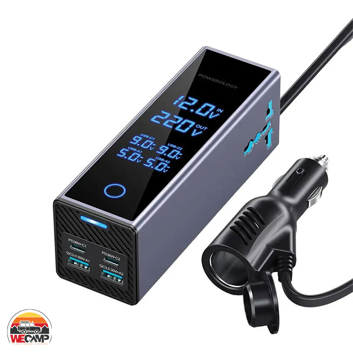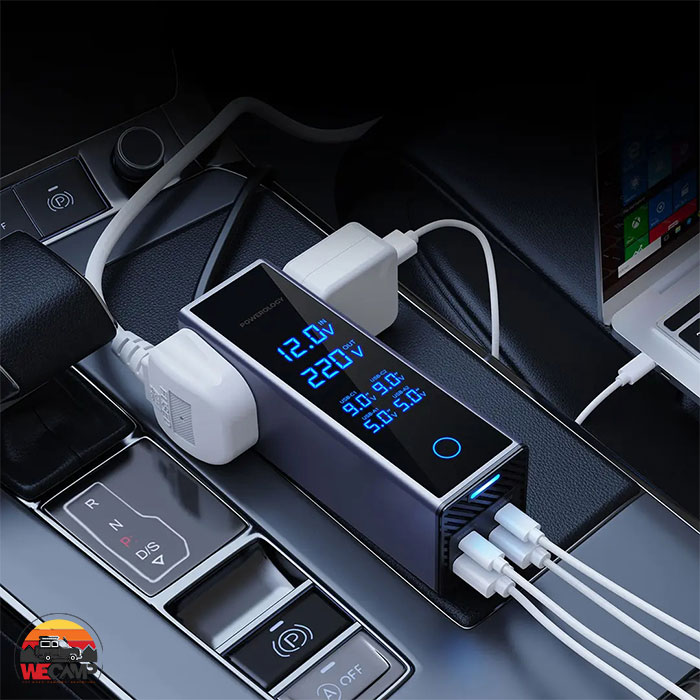 اینورتر خودرو پاورولوژی PWC044 یک مبدل برق قدرتمند و چندمنظوره است که برق 12 ولت DC خودرو را به برق 220 ولت AC تبدیل می‌کند و همزمان امکان شارژ سریع چندین دستگاه دیجیتال را فراهم می‌سازد. این محصول با دو خروجی AC، یک خروجی فندکی DC و چهار پورت USB (دو USB-C و دو USB-A) انتخابی ایده‌آل برای سفر، کمپینگ و استفاده روزمره در خودرو است.