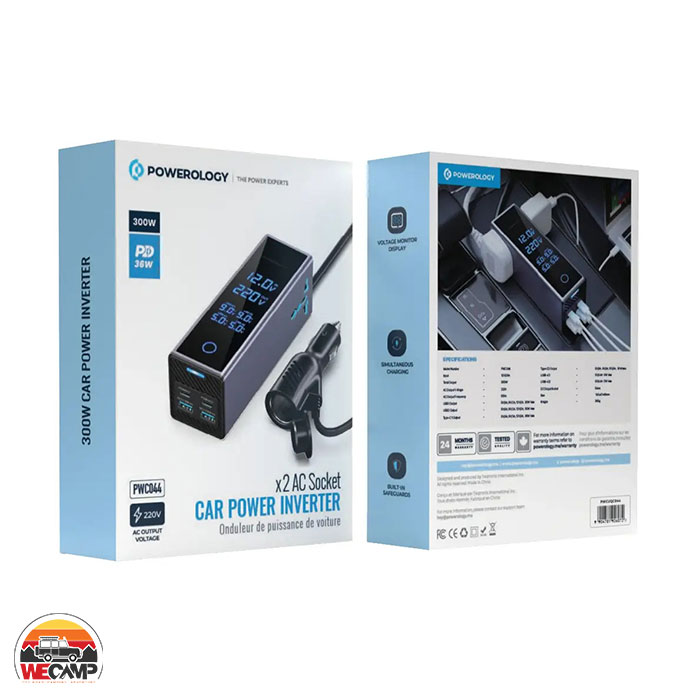 اینورتر خودرو 300 وات پاورولوژی مدل PWC044 – توان 300 وات با نمایشگر ولتاژ
