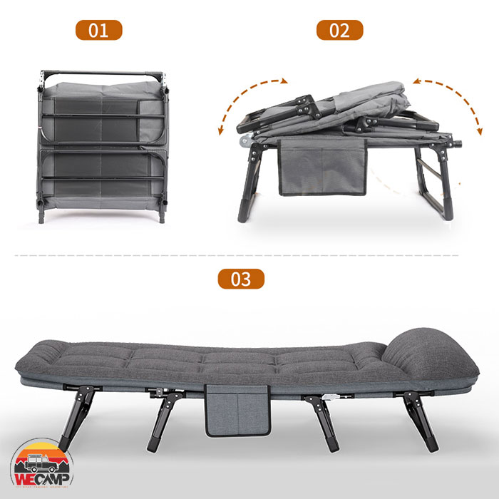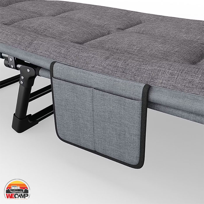 وجود بالش نرم و راحت، تجربهای دلپذیر از استراحت پس از یک روز پرماجرا را فراهم میکند. همچنین جیبهای ذخیرهسازی تعبیهشده روی تخت، محلی مناسب برای نگهداری وسایل ضروری مانند تلفن همراه، چراغقوه یا کتاب هستند.