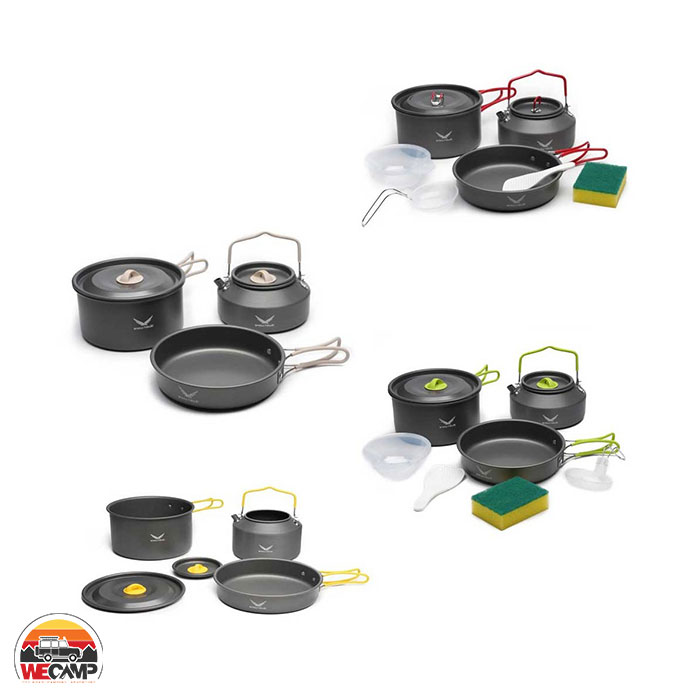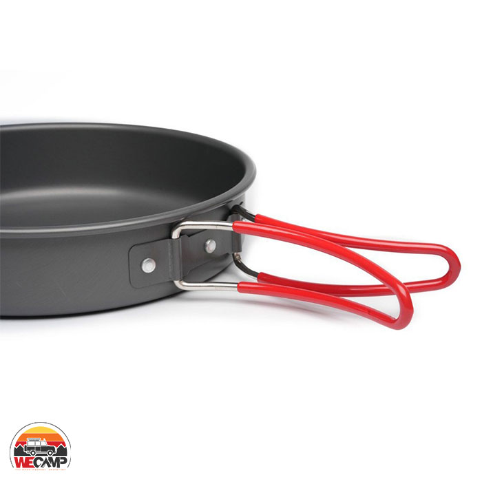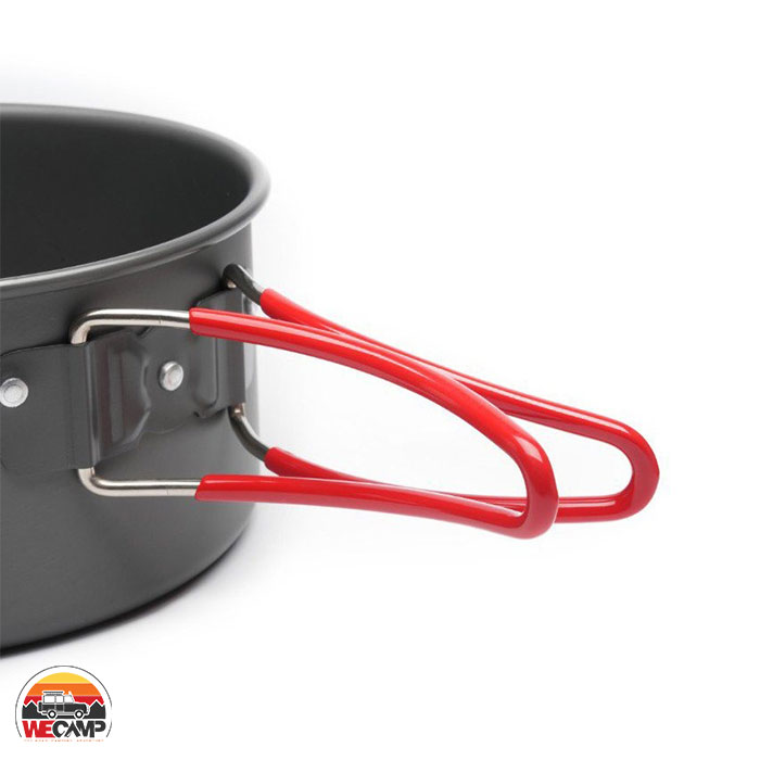 تمامی دستگیرهها از جنس استیل ضدزنگ با روکش پلاستیکی نسوز هستند تا هنگام آشپزی داغ نشوند و ایمنی شما تضمین شود. طراحی تاشو دستگیرهها باعث میشود ظروف فضای بسیار کمی اشغال کنند و به راحتی در کیف مخصوص حمل شوند؛ ایدهآل برای سفر و کمپینگ.