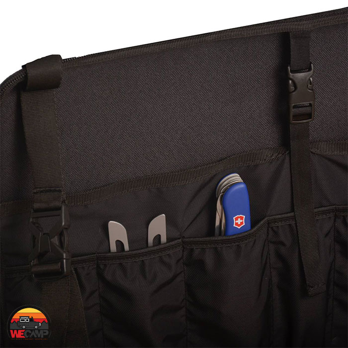 وجود جیب‌های جداگانه برای نظم‌دهی به وسایل و تسمه آویز مخصوص دستمال رولی، این میز را به یک همراه کامل در سفر تبدیل کرده است.