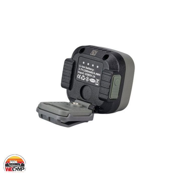 باتری لیتیومی ۱۲۰۰ میلیآمپر ساعتی این نورافکن، در حالت حداکثر نور تا ۱.۵ ساعت و در حالت حداقل نور تا ۳۶ ساعت روشنایی مداوم فراهم میکند. یکی از قابلیتهای جذاب این محصول، امکان تبدیل آن به هدلامپ است. با بند پیشانی همراه محصول، میتوانید آن را روی سر خود ببندید و آزادانه با دستهایتان کار کنید. حتی زاویهی تابش نور این نورافکن نیز قابل تنظیم است، بنابراین برای کوهنوردی شبانه یا کارهای دستی ابزاری مفید و کاربردی است.