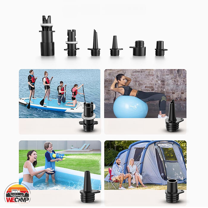 وجود 6 نازل مختلف، کابل فندکی، کابل شارژ Type-C و شلنگ خرطومی اتصال، این پمپ را برای طیف گسترده‌ای از تجهیزات سازگار می‌کند.