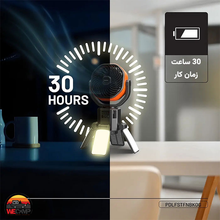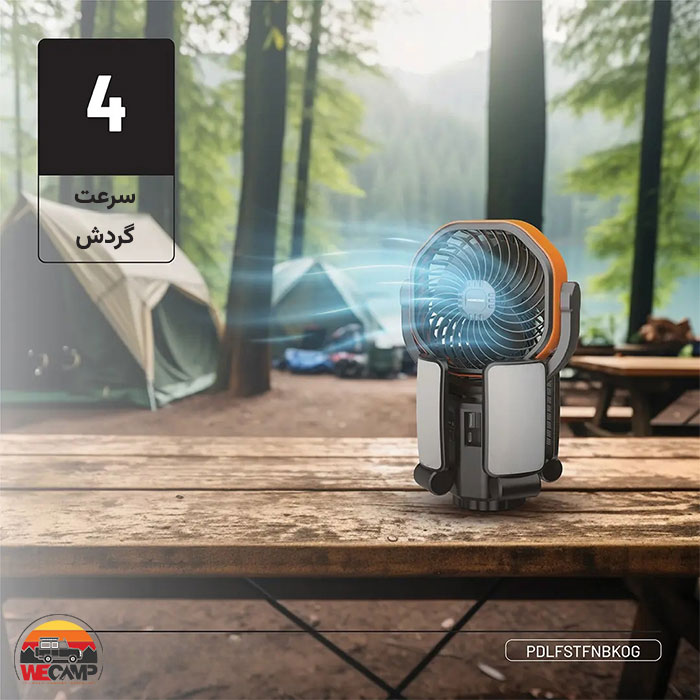 تیغههای قدرتمند این پنکه، جریان هوای قوی و یکنواختی ایجاد میکنند که حتی در هوای گرم تابستانی، محیطی خنک و دلپذیر فراهم میسازد. این قابلیت برای کمپینگ، پیکنیک یا هنگام قطع برق بسیار کاربردی است.