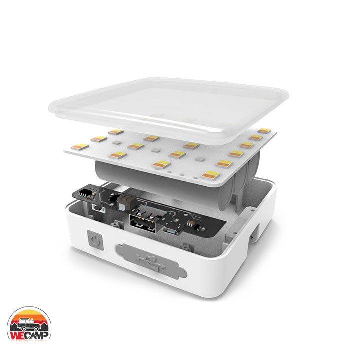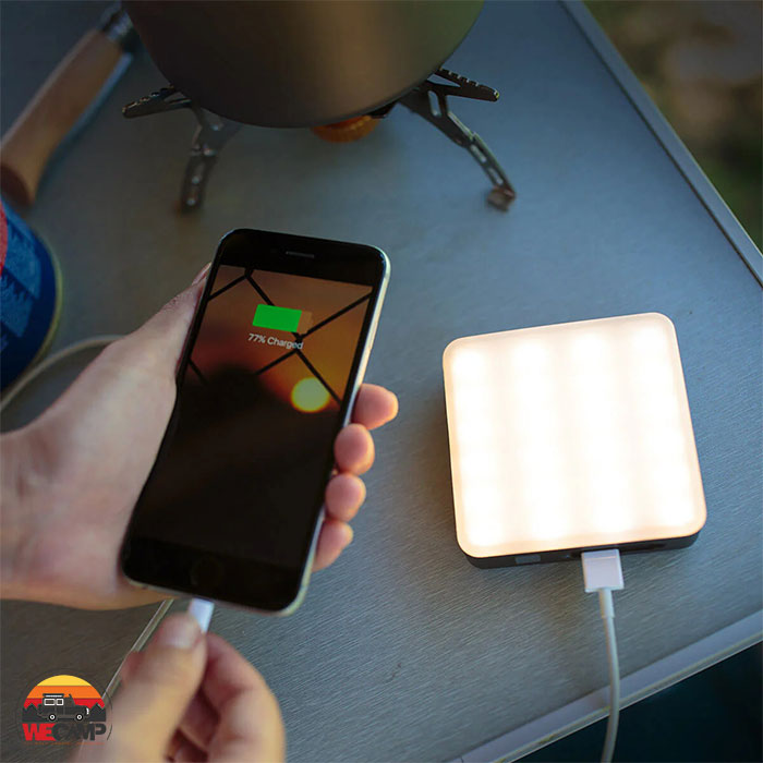 این چراغ تنها منبع نور نیست، بلکه با باتری لیتیومی 9000 میلیآمپر ساعت خود نقش یک پاوربانک قابل اعتماد را نیز ایفا میکند. از طریق درگاه USB-C میتوانید چراغ را شارژ کرده یا گوشی، اسپیکر بلوتوث و سایر دستگاههای خود را از طریق درگاه USB-A و کابل سه سر همراه محصول شارژ کنید.