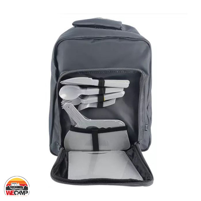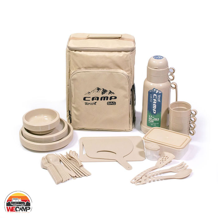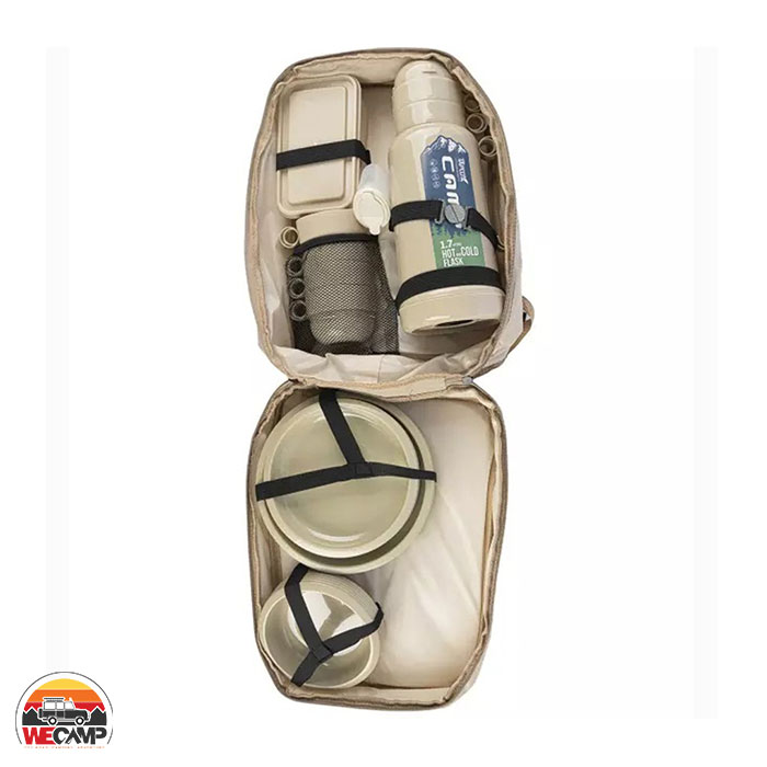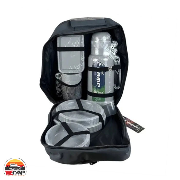 این پک شامل ۵۵ تکه از پرکاربردترین ظروف سفر است: از بشقاب و لیوان گرفته تا قاشق، چنگال، چاقو، فلاسک، تخته گوشت و حتی بادبزن! همه این اقلام بهصورت تفکیکشده و منظم در یک کیف مخصوص قرار گرفتهاند تا در سریعترین زمان آماده استفاده باشند.