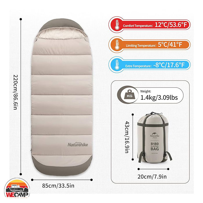 کیسه خواب یک نفره نیچرهایک B180 محصولی بی نظیر با طراحی کاربردی و وزن سبک است که برای استفاده در کمپینگ، سفرهای جاده‌ای، طبیعت‌گردی و حتی سفر با دوچرخه یا موتور طراحی شده است. این مدل با بهره‌گیری از متریال باکیفیت و ساختار چندمنظوره، آسایش و گرمای مطلوبی را در شب‌های سرد بهاری، تابستانی و پاییزی فراهم می‌سازد.