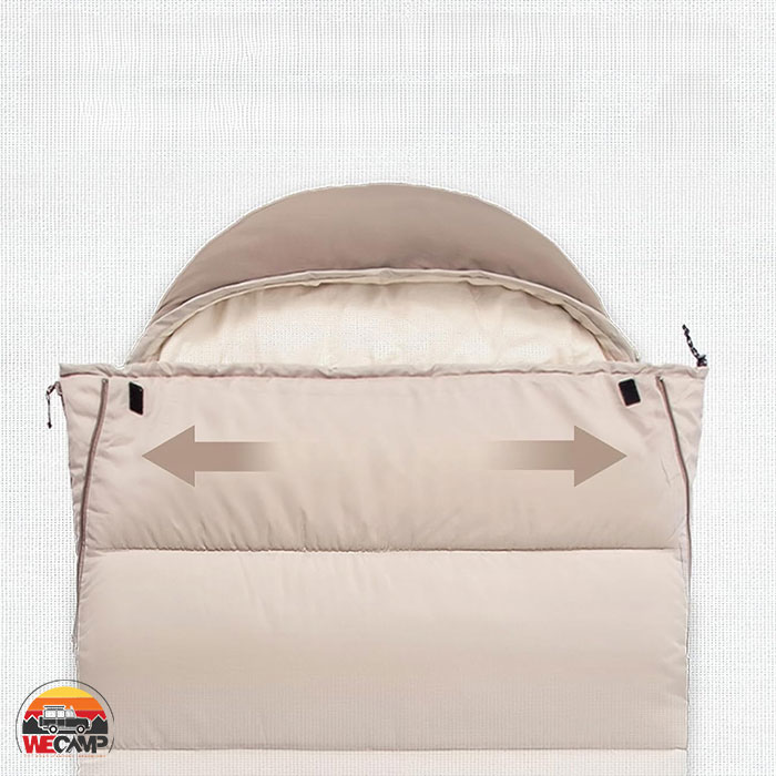 امکان باز شدن کامل کیسه خواب، این قابلیت را فراهم کرده تا از آن به عنوان پتو، زیرانداز یا حتی کیسه خواب دو نفره استفاده شود. این ویژگی، کاربرد محصول را در موقعیت‌های مختلف افزایش داده و آن را به گزینه‌ای منعطف برای سفرهای گروهی تبدیل کرده است.